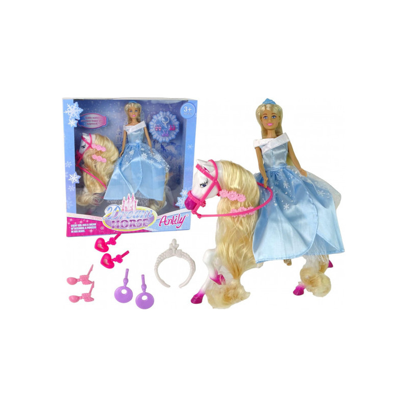 LEAN Žaislų Lėlių Rinkinys Arklio Aksesuarai Karūna Suknelė Mėlyna