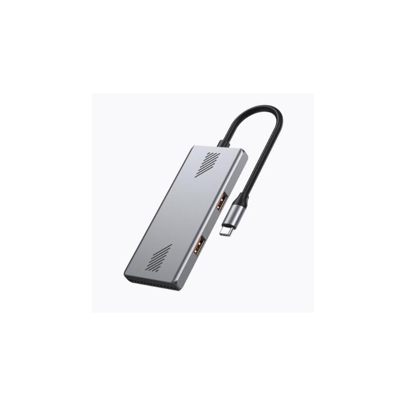 Adapteris USB Type-C - 2x HDMI, VGA, LAN, 3x USB Type-A, SD, TF, USB Type-C PD100W, Aux