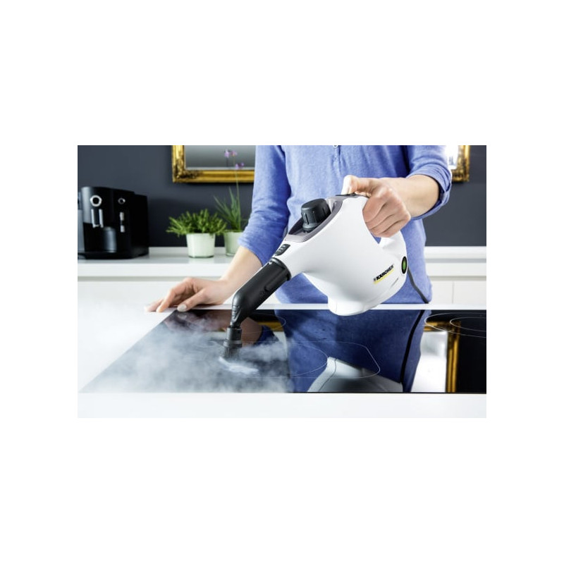 The Kärcher SC 4 EasyFix Premium iron is a steam cleaner for chemical-free cleaning of various hard surfaces. It has a 0.8 liter water capacity, adjustable steam intensity, and the steam iron reduces ironing time by up to 50%.