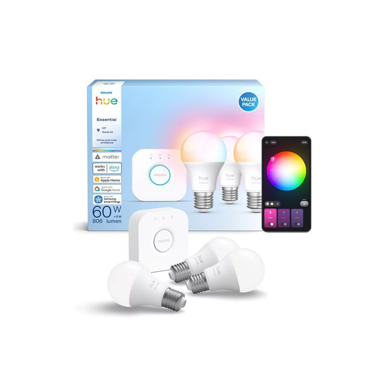 LED bulb Philips Hue WCA Starter Kit 9W A60 E27 3pcs, Bridge, Switch