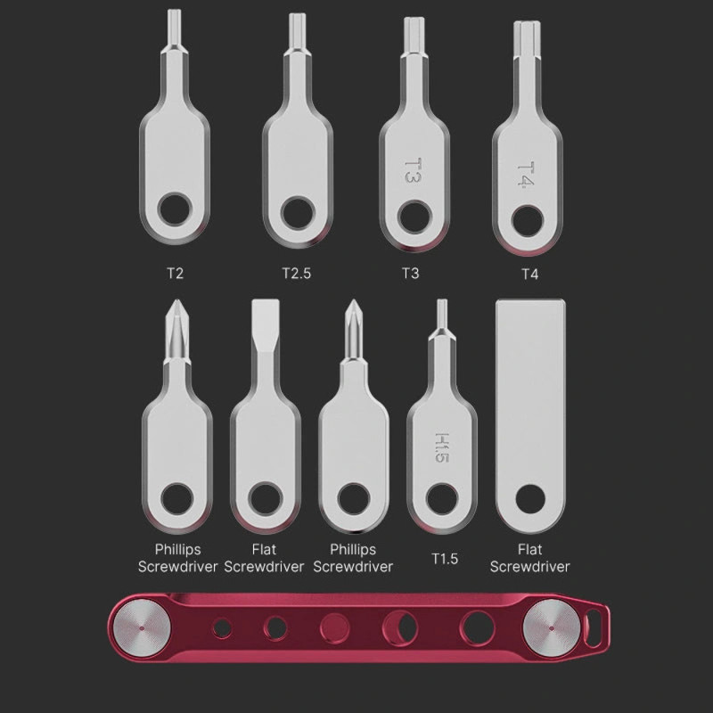 CM029 sulankstomų įrankių rinkinys apima 9 in 1 atsuktuvų rinkinį su įvairių dydžių plokščiais ir kryžminiais atsuktuvais. Pagamintas iš nerūdijančio plieno ir aliuminio lydinio, jis turi papildomų varžtų skylių atsarginiams varžtams laikyti ir yra kompaktiškas, todėl lengvai transportuojamas.