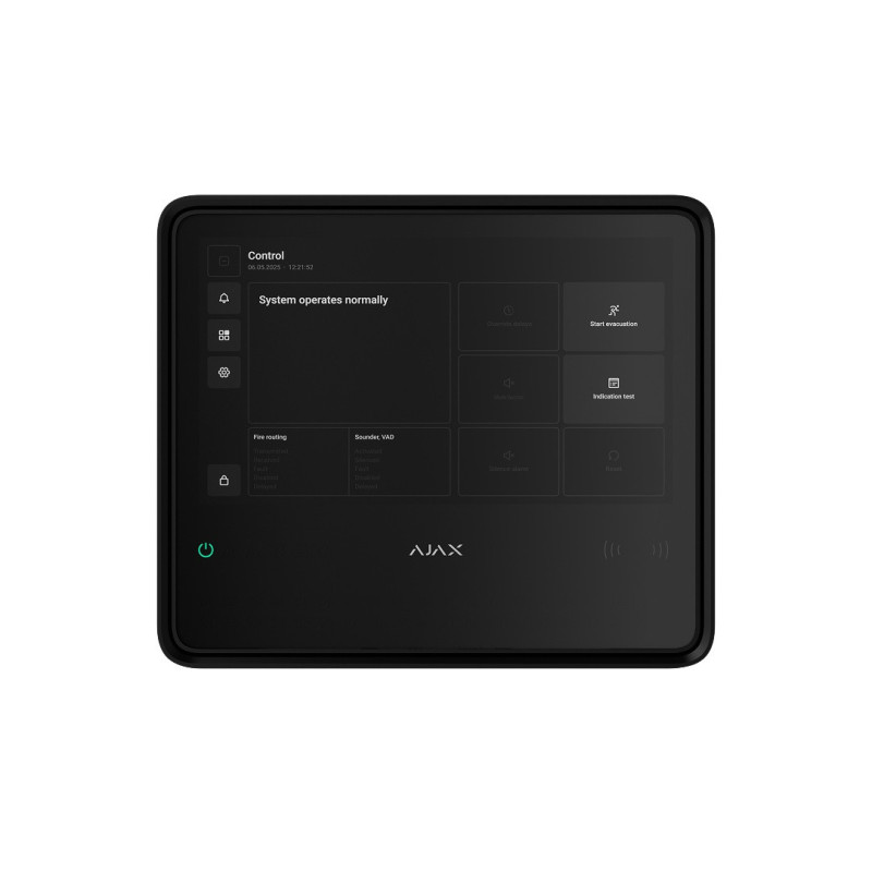 Type: Wireless fire sirenModel: Ajax EN54 FireProtect (Sounder)Color: BlackSound level: 100 dBSignals: 32 tonesCommunication range: up to 1700 mResponse time: up to 3 sInstallation: Ceiling or wall-mounted