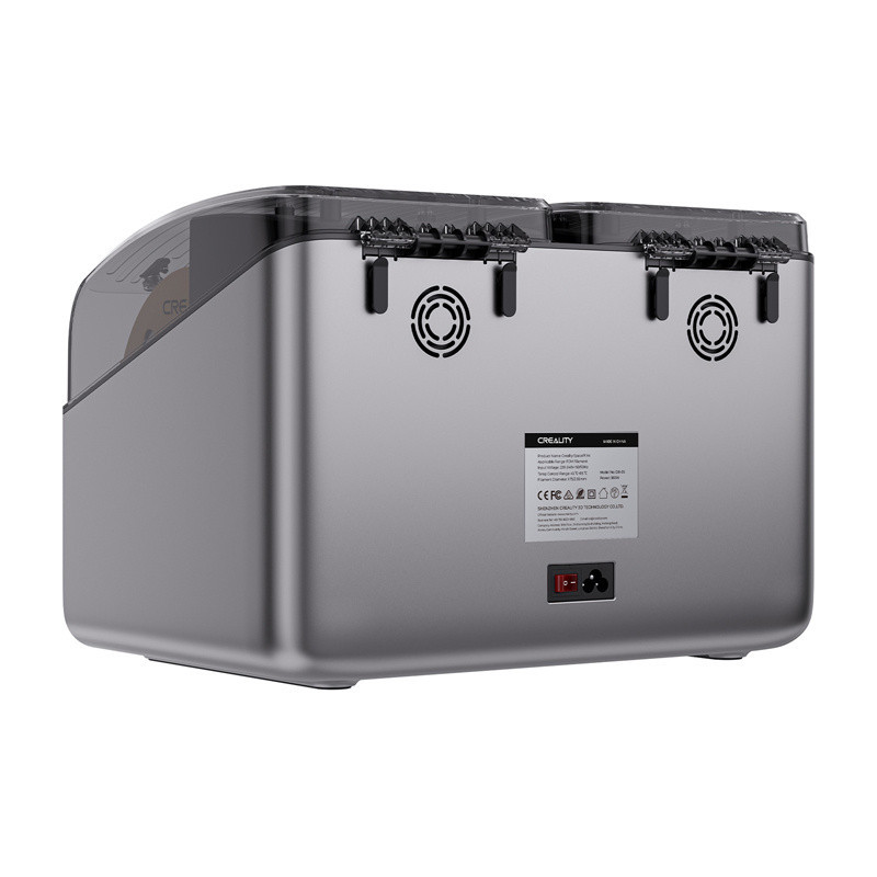 „Creality SpacePi X4“ yra galingas dviejų kamerų filamentų džiovintuvas, leidžiantis vienu metu džiovinti net 4 rites, visiškai kontroliuojant temperatūrą nuo 45 iki 85 °C. Dėl aktyvios džiovinimo technologijos, greito kaitinimo ir tylaus veikimo paruošite PLA, PETG, TPU, ABS arba PA-CF filamentus spausdinimui atkuriamu ir stabiliu būdu, pašalindami drėgmės, burbuliukų ir dilimo problemą spausdinimo metu.