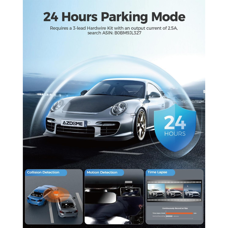 Vaizdo registratorius M580 taip pat gali 24 valandas stebėti jūsų automobilį stovint, todėl galima nepertraukiamai įrašyti laiko intervalą ir automatiškai aptikti susidūrimą. Tai reiškia, kad net ir patyrę nelaimingą atsitikimą gausite esminių įrodymų, kurie pravers ieškant kompensacijos. Pastaba: norint naudotis šia funkcija reikalingas papildomas laidų rinkinys, kurį reikia įsigyti atskirai.