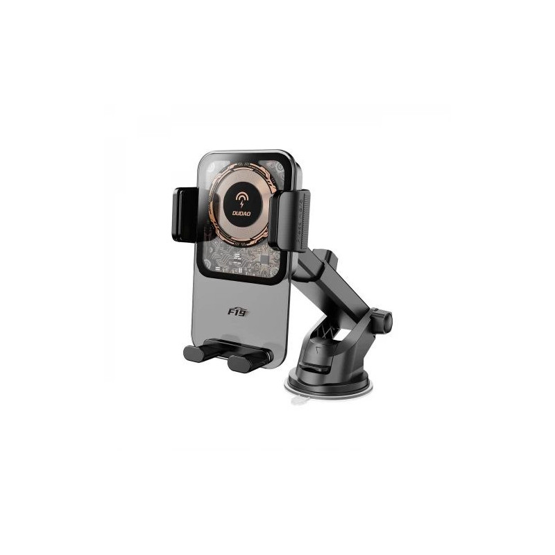 Automobilinis laikiklis Dudao 'F19' juodas (bevielis krovimas 15W)(ne magnetinis / lipinamas / grotelėms)