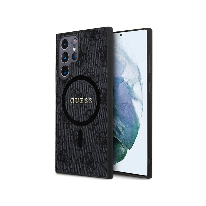 „Guess 4G Collection“ odinis metalinis „MagSafe“ dėklas, skirtas „Samsung Galaxy S24 Ultra“ – juodas