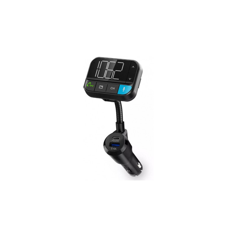 Įkroviklis automobilinis + FM transmiteris Blue Star (MT04B) (2xUSB-C, 20W, 3.0A) juodas