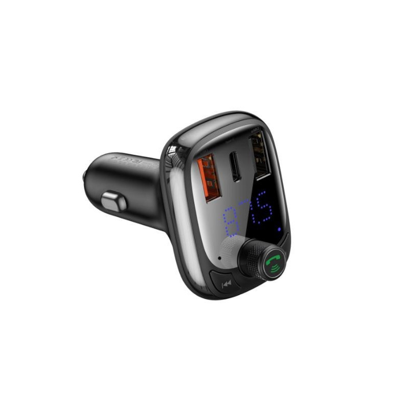 Įkroviklis automobilinis + FM transmiteris BASEUS (S-13) (2xUSB;1xUSB-C) juodas