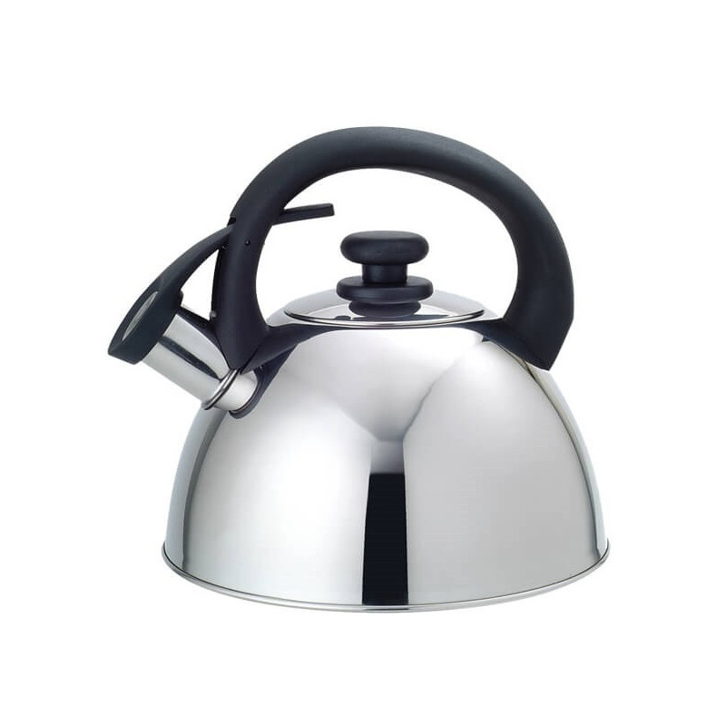 1,8 L talpos elektrinis virdulys MR-1336 MAESTRO tinka įvairiems viryklės tipams, įskaitant dujines ir indukcines. Jis turi nerūdijančio plieno korpusą, pakeliamą švilpuką ir juodą, nesikaitinančią rankeną.