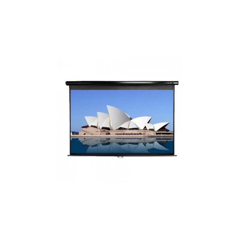 100 colių projekcinė ekranas su 16:9 formatu ir 160° matymo kampu. Rankinis nusileidimo mechanizmas su automatišku susitraukimu ir tvirtu cinkuotu plieno korpusu, skirtu montuoti ant sienos arba lubų.