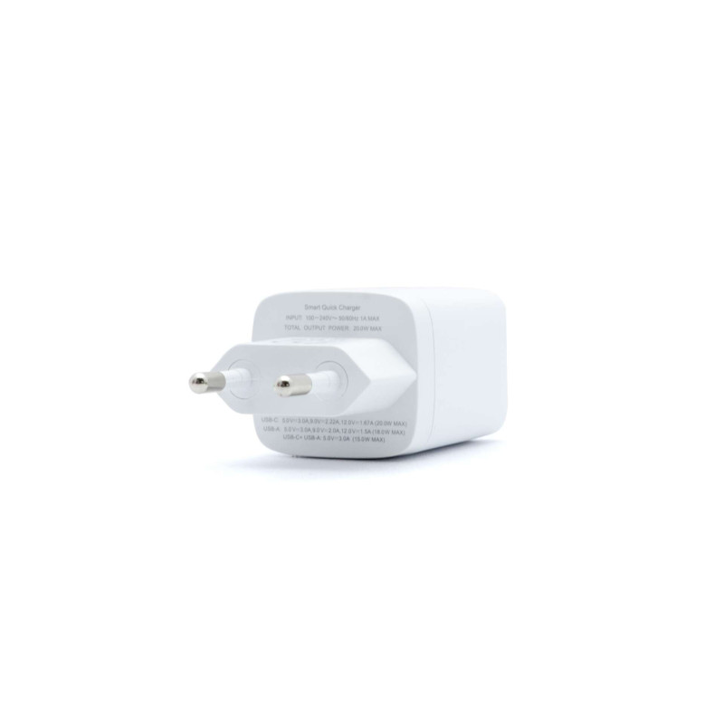 Išmanusis sieninis įkroviklis su „Power Delivery“ funkcija ir „QUICK CHARGE 3.0“ palaikymu. Kompaktiškas, turi USB C tipo PD prievadą ir USB A tipo „QUICK CHARGE 3.0“ prievadą. Maži 35 x 31 x 84 mm matmenys užtikrina aukštos kokybės įrenginį, užtikrinantį patvarumą ir saugumą naudojimo metu. Įkroviklis turi USB-C jungtį, skirtą YPAČ GREITAI įkrauti, taupant laiką. Jis idealiai tinka įrenginiams su USB-C / C tipo jungtimi ir bet kokiam įrenginiui, naudojančiam USB-A laidą. Taikymas: