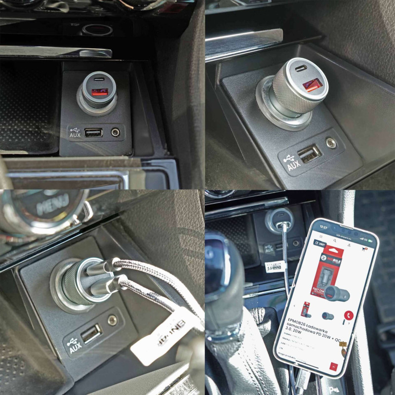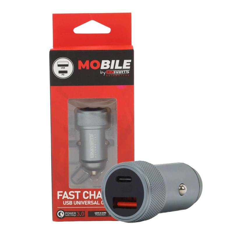 EPMOB26 - PD 20W + QC 3.0 automobilinis įkroviklis Automobilinis įkroviklis buvo pagamintas iš patvaraus aliuminio korpusas ...kuris užtikrina puikų šilumos išsklaidymą ir didelį atsparumą pažeidimams. Modelis turi du didelės spartos prievadus: USB-C maitinimo tiekimas ir USB-A greitasis įkrovimas 3.0, leidžianti vienu metu įkrauti du įrenginius. USB-C prievadas suteikia energijos iki 20 W kaip standartinis PD, todėl idealiai tinka šiuolaikiniams išmaniesiems telefonams, planšetiniams kompiuteriams ir mobiliesiems įrenginiams. USB-A prievadas palaiko QC 3.0 su galia 18W, užtikrinant greitą ir stabilų „Quick Charge“ suderinamų įrenginių įkrovimą. Įkroviklis veikia diapazone 12–24 V, todėl tinka lengviesiems automobiliams, autobusams ir sunkvežimiams. Integruotos apsaugos priemonės apsaugo įrangą nuo viršįtampio, perkaitimo ir trumpojo jungimo, užtikrindamos saugų naudojimą. Techninės specifikacijos: