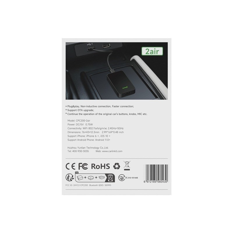 CarlinKit 5.0 2AIR CPC200-2air belaidis adapteris, juodas