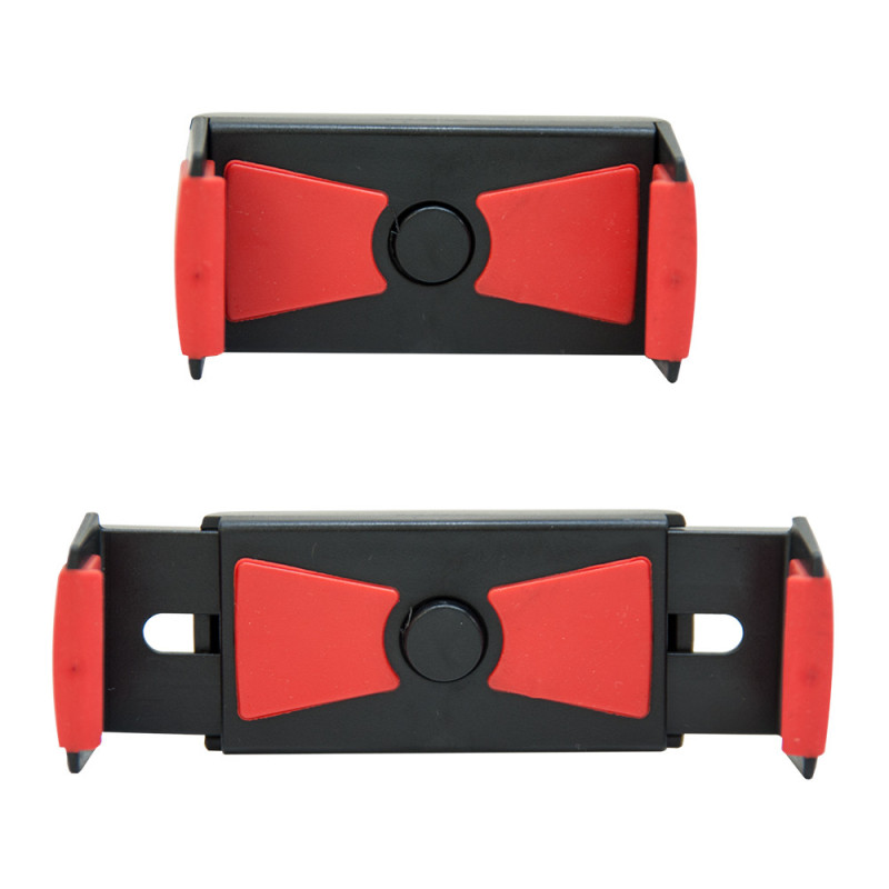 Mobiliojo telefono laikiklis su ventiliacijos rankena ir tvirtinimo mygtuku.