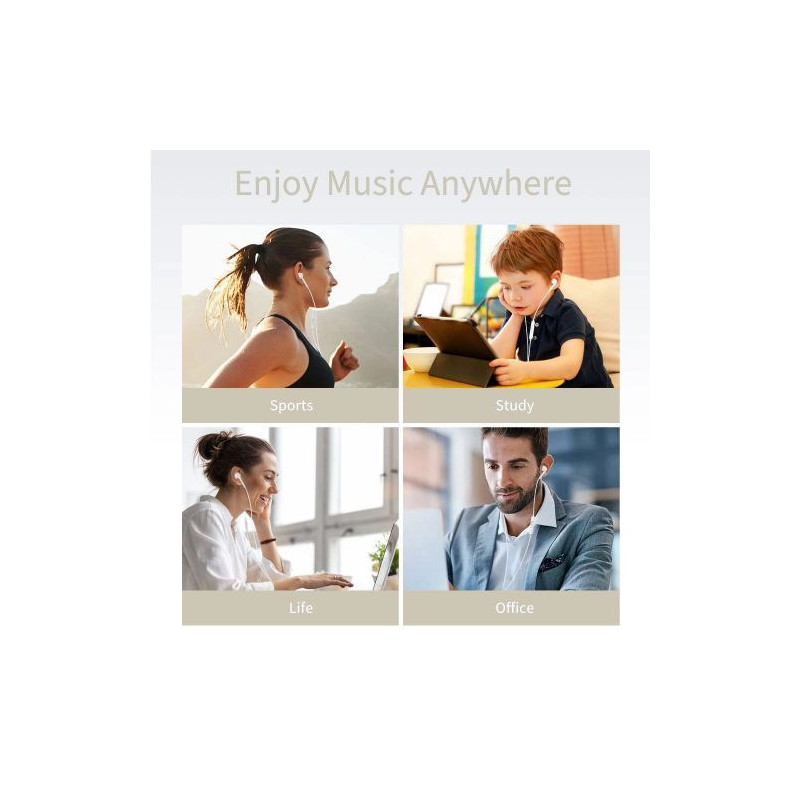Dėl garsiakalbių su sudėtine diafragma naudojimo ausinės skleidžia natūralų ir dinamišką garsą. „Plug-and-play“ funkcija leidžia nedelsiant naudoti ausines, nereikia diegti papildomų tvarkyklių. Praktiški mygtukai ant laido leidžia greitai valdyti: „+“ mygtukas padidina garsumą, „-“ mygtukas sumažina garsumą, o vidurinis mygtukas leidžia sulaikyti ir atsiliepti į skambučius.