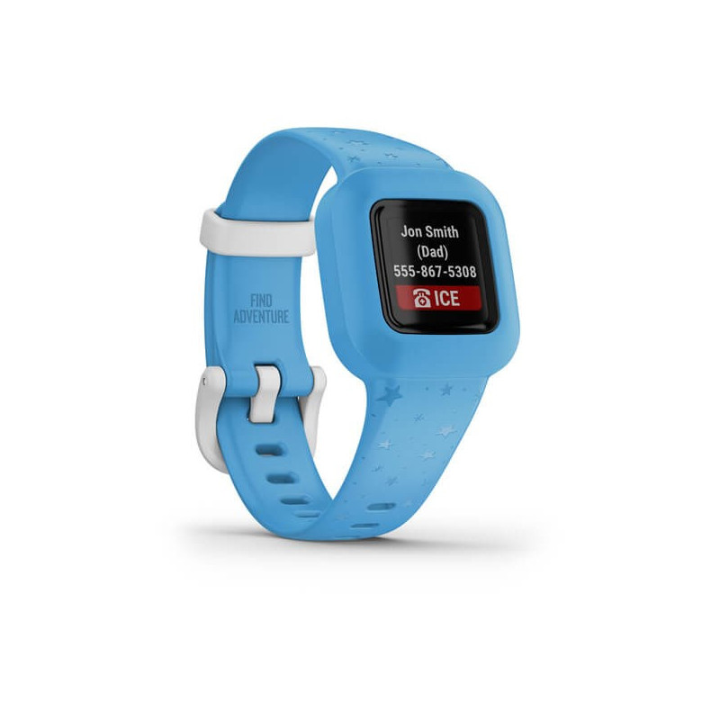 Garmin vivofit jr. 3 MIP aktyvumo sekiklis pasižymi mėlynu silikono dizainu, įkraunama baterija, kuri veikia iki 365 dienų, ir 5 ATM atsparumu vandeniui. Jame yra žingsniamatis, širdies ritmo matuoklis, žadintuvas bei pranešimai apie skambučius ir žinutes.