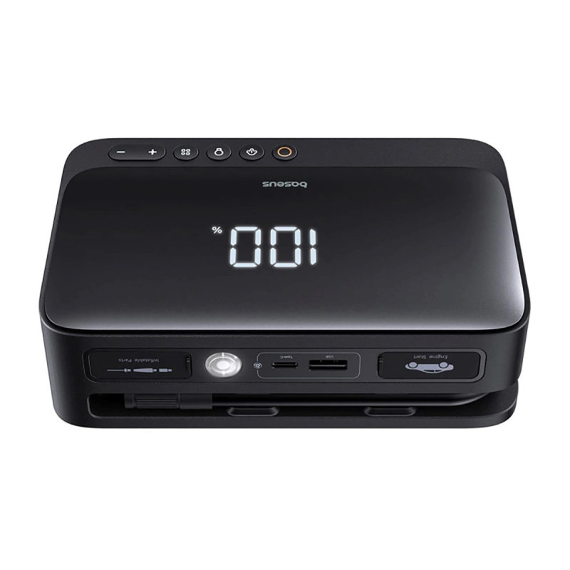 The Baseus Super Energy BS-CH013 has a 6000mAh capacity power bank, 300A starting current and a built-in flashlight. It has one USB Type A and one USB Type-C port, and the compressor reaches a maximum pressure of 150 psi.
