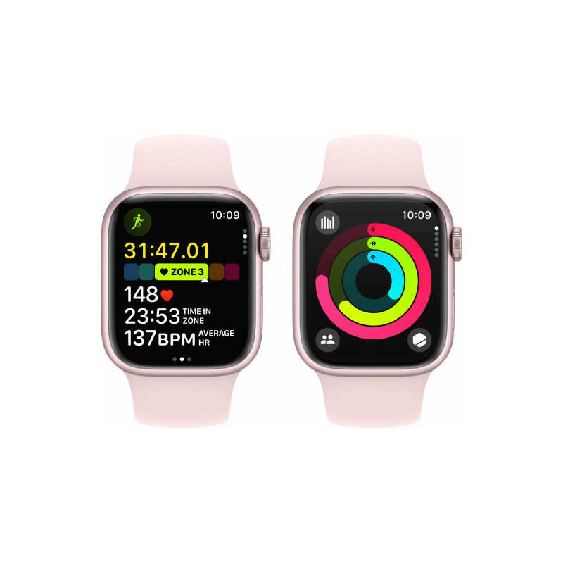„Apple Watch Series 9 Cellular“, 41 mm, rožinis / šviesiai rožinis sportinis dirželis – S / M