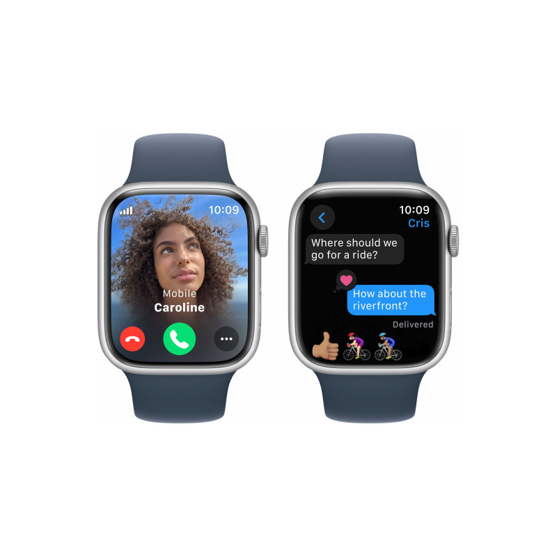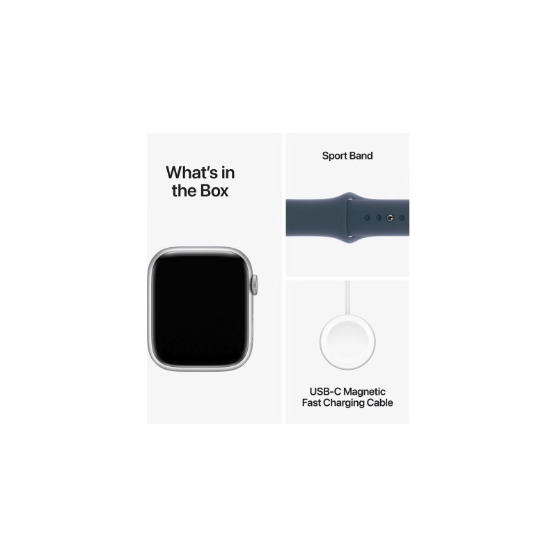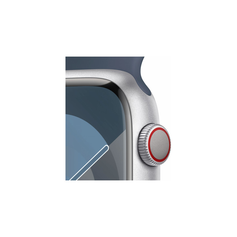 „Apple Watch Series 9 Cellular“ 45 mm sidabrinis nerūdijančio plieno / audros mėlynos spalvos dirželis – S/M
