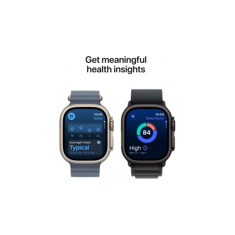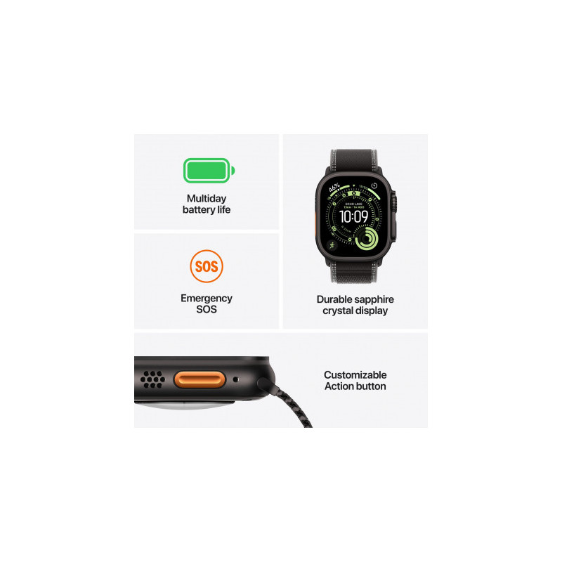 „Apple Watch Ultra 3“, 49 mm, natūralaus titano spalvos / mėlynos spalvos / ryškiai mėlynos spalvos „Trail Loop“ – S/M