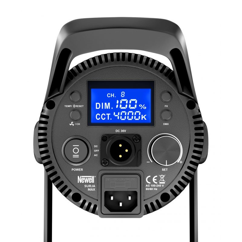 Newell Surja Max 500 yra 450 W LED šviesa su reguliuojama spalvų temperatūra nuo 2700 K iki 6500 K ir CRI įvertinimu 96+. Ji turi DMX integraciją, nuotolinio valdymo galimybę per mobiliąją programėlę ir apima 12 įmontuotų specialių efektų, skirtų įvairioms apšvietimo programoms.