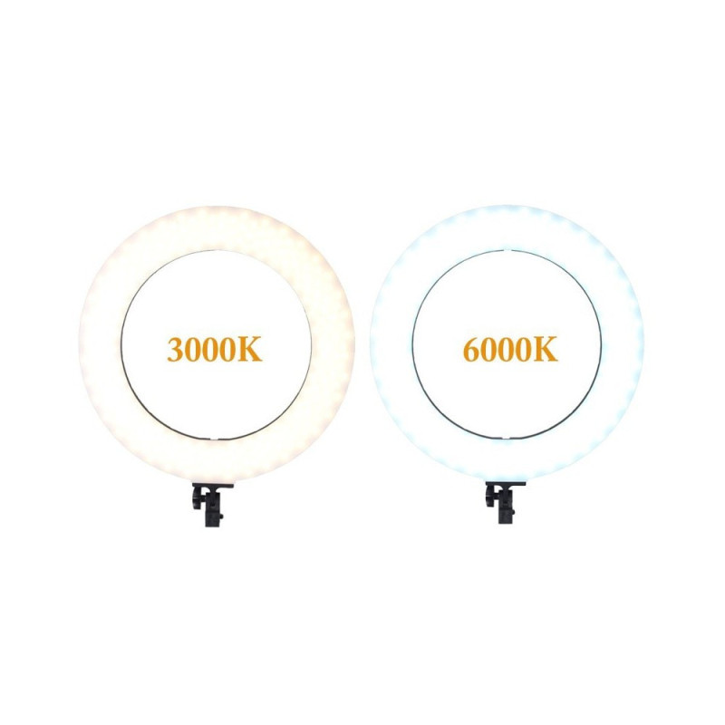 Žiedinis šviestuvas LED 60W (3000-6000K) puikiai tinka MUA vizažistams, portretų fotografavimui, puikus šviesos šaltinis filmuojant youtube vlog'us ir kt.