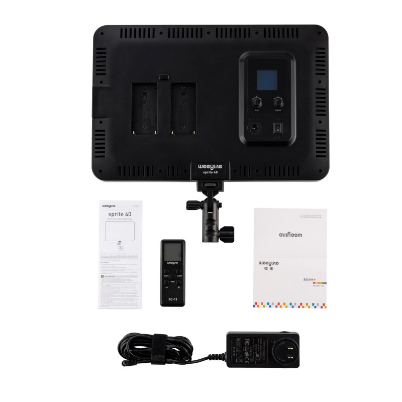 Viltrox Weeylite lampa LED Sprite 40 yra 40W RGB LED šviesos panelė, skirta profesionaliai fotografijai ir videografijai. Ji turi reguliuojamą šviesumą, pilnus RGB spalvų režimus ir mobiliosios programėlės valdymą, su aukštu spalvų atkūrimo indeksu (CRI) 95+.