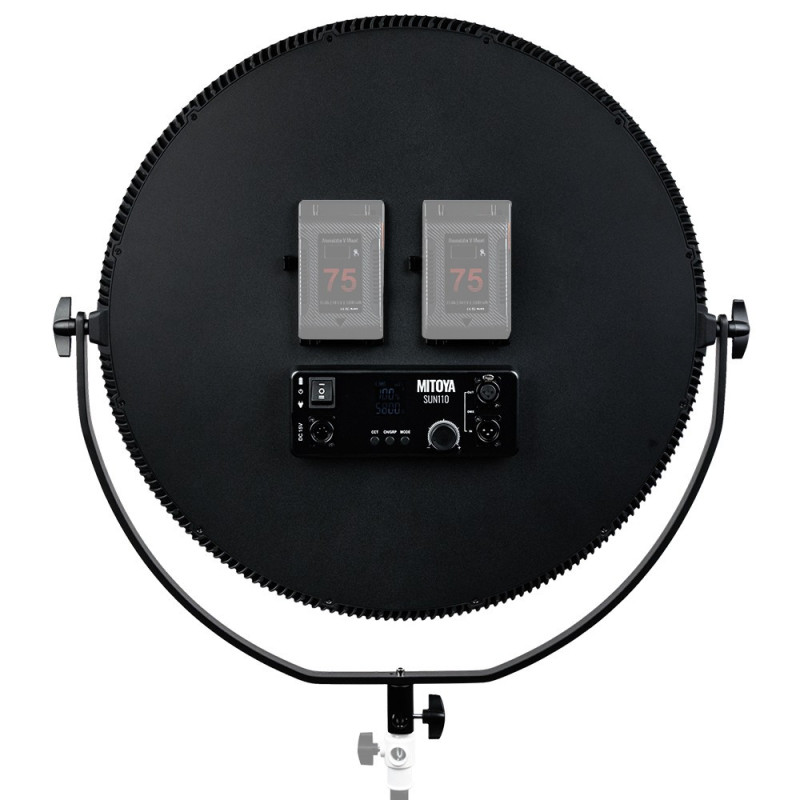MITOYA SUN70 yra minkštas LED šviesos panelis su reguliuojamu ryškumu nuo 1% iki 100% ir spalvų temperatūros nustatymais nuo 3200K iki 5600K. Jis turi 45,5 cm skersmenį, aukštą CRI 95+ ir gali būti maitinamas AC arba V-Lock baterija, todėl puikiai tinka fotografijai ir grožio procedūroms.