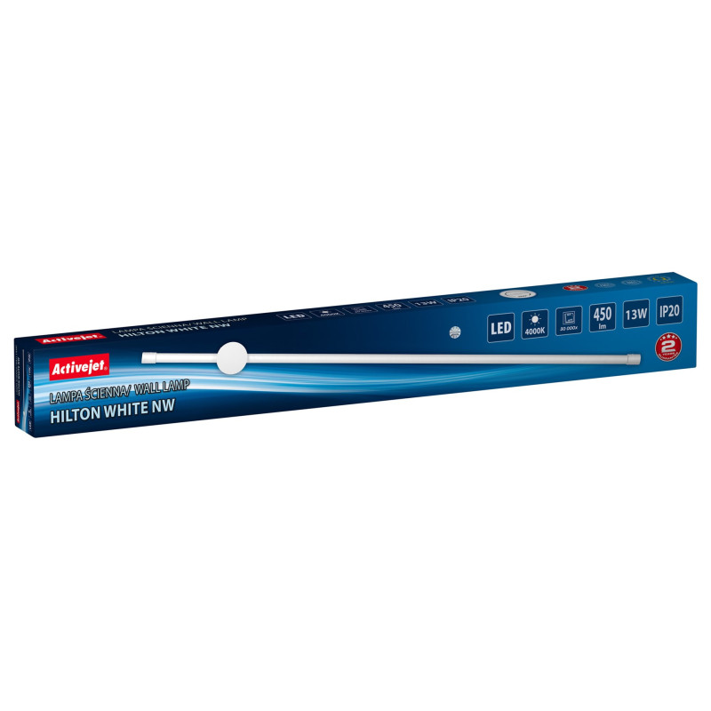 The Activejet AJE-HILTON LED wall lamp consumes 13 W of power, emits 450 lm of light with neutral white light (4000 K) and is suitable for indoor use in various locations. Its service life is 30,000 hours.