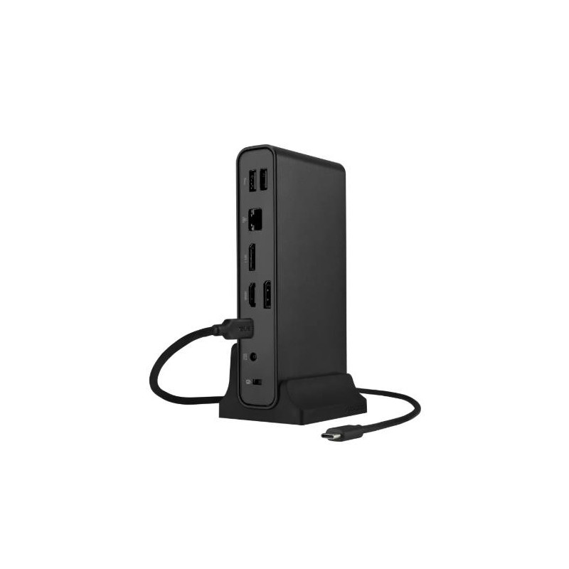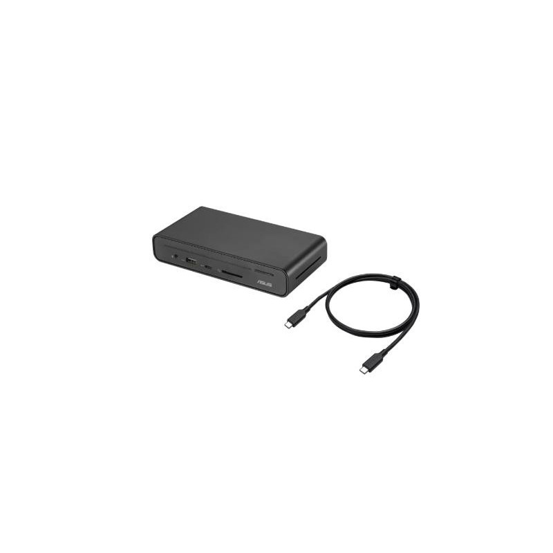 ASUS Triple Display USB-C Dock Duo DC301 Duo is a sleek, compact one-stop device that streamlines laptop connectivity. Power your laptop through a single cable, connect to your network and peripherals, and multitask with up to four monitors1 — including a laptop monitor and three external monitors. It also has an integrated SD card reader for a diverse array of business scenarios. Simply put, ASUS Triple Display USB-C Dock Duo DC301 Duo keeps your desk neat, tidy and organized while setting you up for work in the blink of an eye.