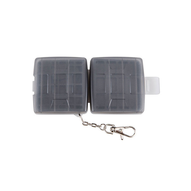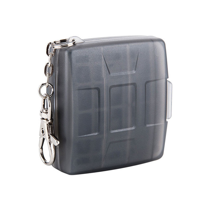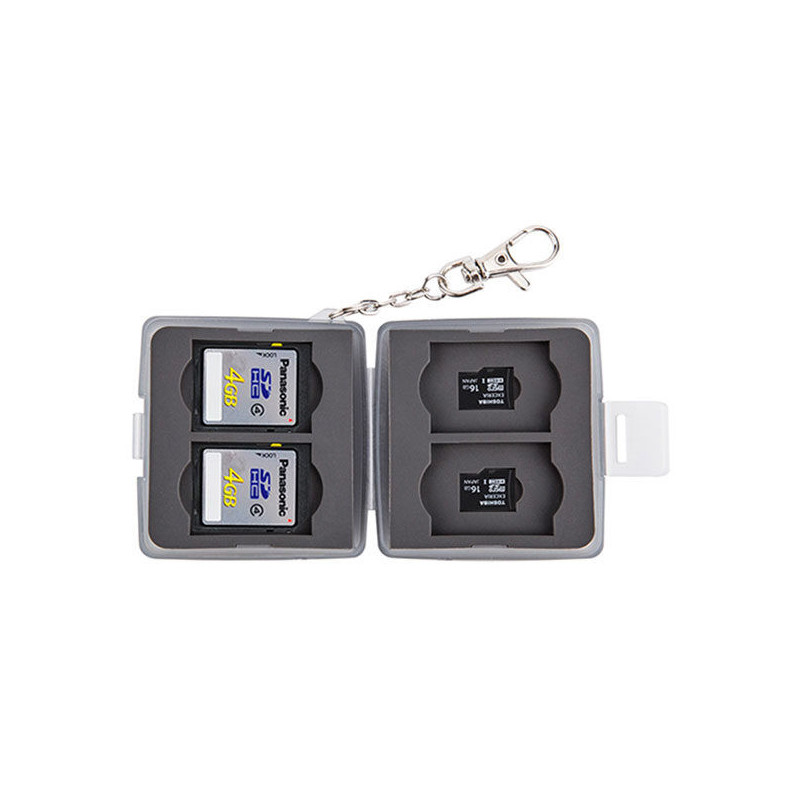 JJC MC 11D atminties kortelių dėklas saugiai talpina keturias SD ir keturias micro SD atminties korteles. Jame yra formuotas gumos vidus, kuris apsaugo nuo smūgių, taip pat jis yra atsparus vandeniui, purvui ir dulkėms.