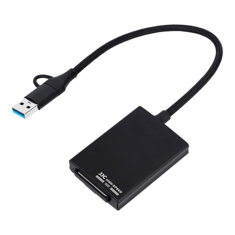 JJC CR XQD BLACK kortelių skaitytuvas palaiko XQD atminties korteles ir siūlo USB 3.2 Gen1 perdavimo greičius iki 5Gbps. Jame yra dviguba funkcija su Type C ir USB A jungtimis, užtikrinančiomis universalų suderinamumą, ir jis yra suderinamas su įvairiomis operacinėmis sistemomis.