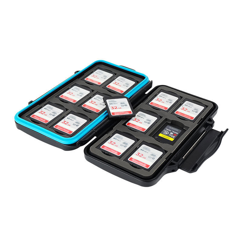 JJC MCR SC24 atminties kortelių laikiklis talpina iki 12 SD ir 12 CFexpress Type A atminties kortelių. Jis pasižymi tvirtu dizainu su silikono sandarinimo žiedu, kuris apsaugo nuo dulkių ir vandens.
