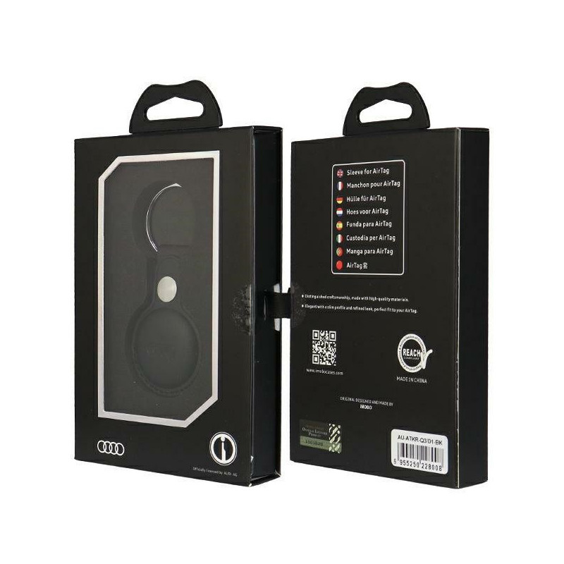 Visumą papildo būdingas AUDI prekės ženklo logotipas, suteikiantis „Air Tag“ dėklui elegantišką charakterį.