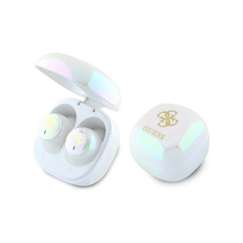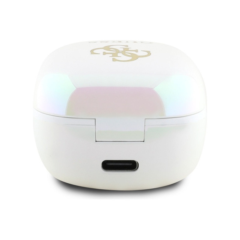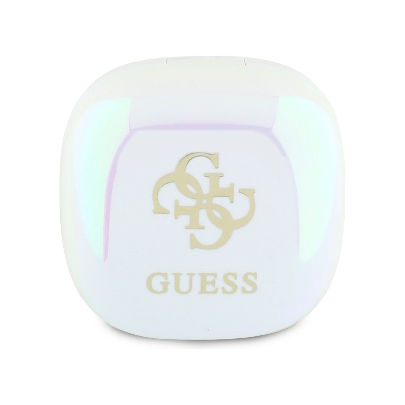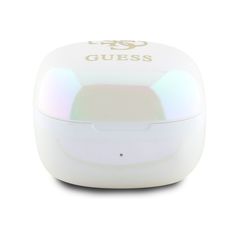 Guess Bluetooth ausinės GUTWSJ144ESH TWS + prijungimo stotelė balta/balta Iridescent 4G spausdintas logotipas