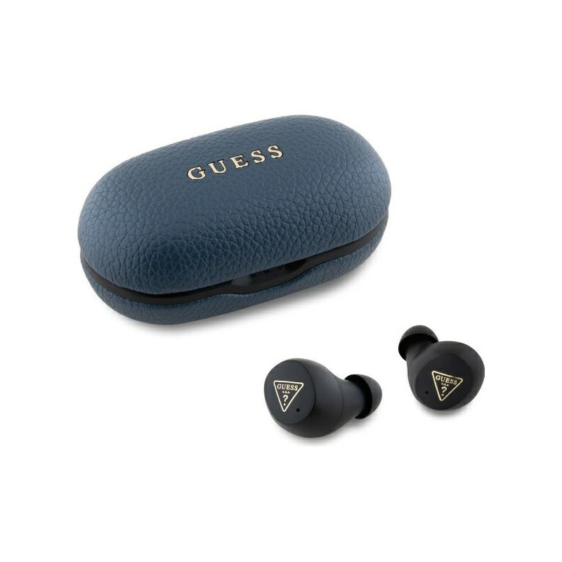 Guess Bluetooth ausinės GUTWSPGTSPSB TWS + prijungimo stotelė mėlyna/mėlyna grūdėtas klasikinis logotipas
