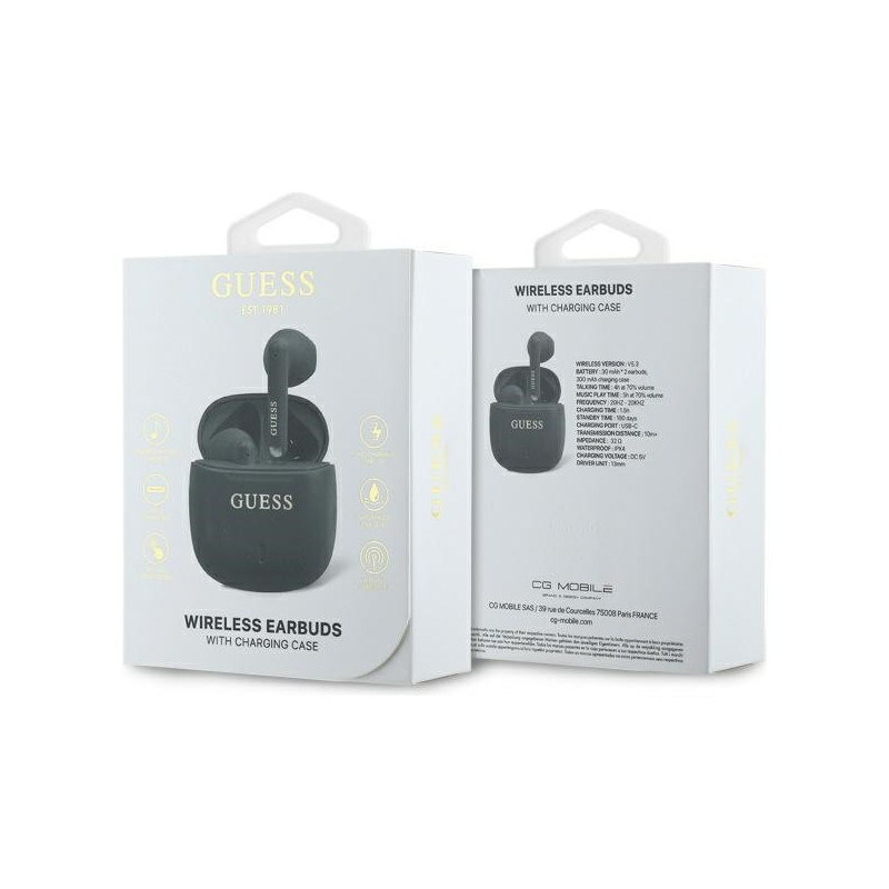 „Guess“ spausdinto klasikinio logotipo belaidės „Bluetooth“ ausinės - juodos