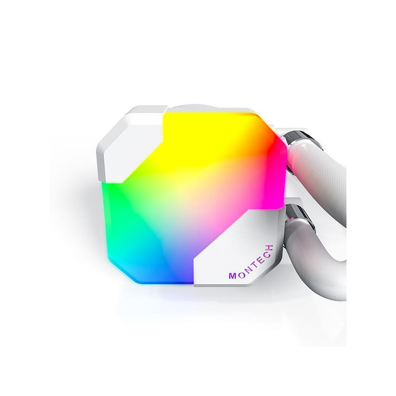 | Santrauka | „Montech HyperFlow ARGB 240“. Tipas: Viskas viename skysčio aušintuvas, Ventiliatoriaus skersmuo: 12 cm, Oro srautas: 129,5 m³/h, Maksimalus oro slėgis: 3,81 mmH2O, Guolio tipas: Skysčio dinaminis guolis (FDB). Produkto spalva: Balta |