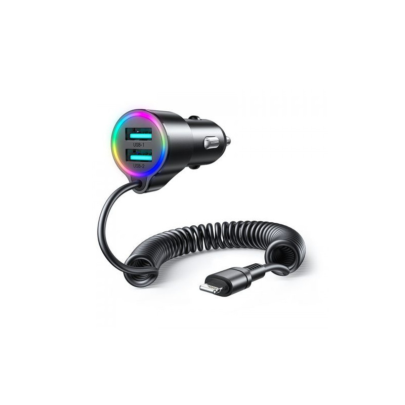 Automobilinis įkroviklis Joyroom 'JR-CL25' juodas 17W (2xQC3.0 / with LED Lighting) + 'Lightning' laidas 150cm