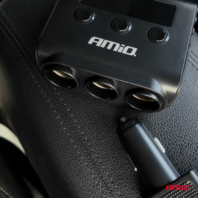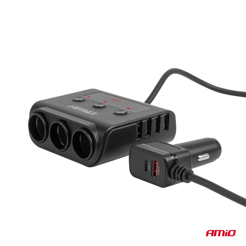 Cigarečių žiebtuvėlio lizdo skirstytuvas su įkrovikliu 4xUSB-A QC3.0 PD 3.0 180W AMIO-04835
