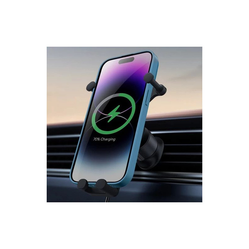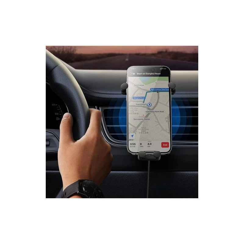 The built-in 15W inductive charger will support your device - you will not worry about the battery condition. Thanks to the rotating head and small size, you can place the holder on any type of ventilation grille. In addition, the "arms" of the holder and the head are covered with a soft to the touch, strong rubber, thanks to which they hold the phone stably during the journey. The spring mechanism allows you to place phones with a width of 67mm to 86mm.