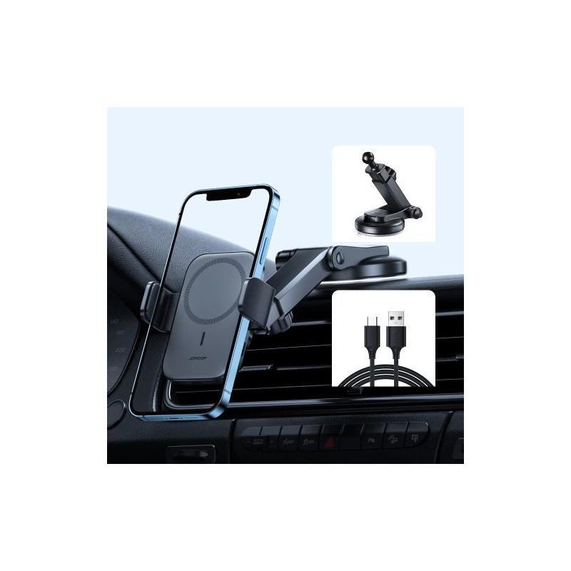 The car phone holder with the Joyroom JR-ZS295 inductive charger with the MagSafe wireless charging option is a gadget that every driver will appreciate. Its universal design makes it suitable for most dashboards in various vehicles, which translates into extremely simple installation. The ability to rotate 360 degrees ensures the perfect setting of the phone to the user's needs. The holder is ideal for Apple devices that have the MagSafe wireless function.
