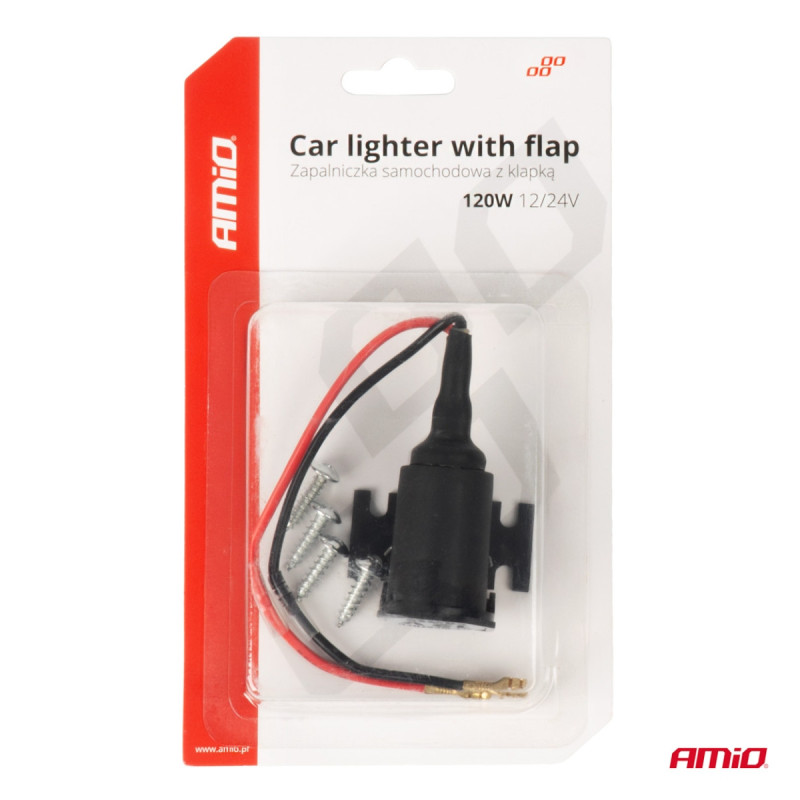 Automobilio cigarečių degiklio lizdas su atvartu 12V 24V AMIO-04128