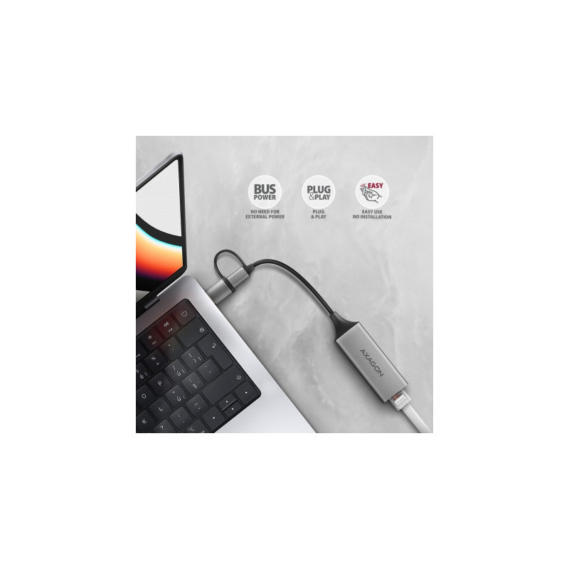 | Konektori | USB + USB-C spraudnis <-> RJ45 ligzda |
