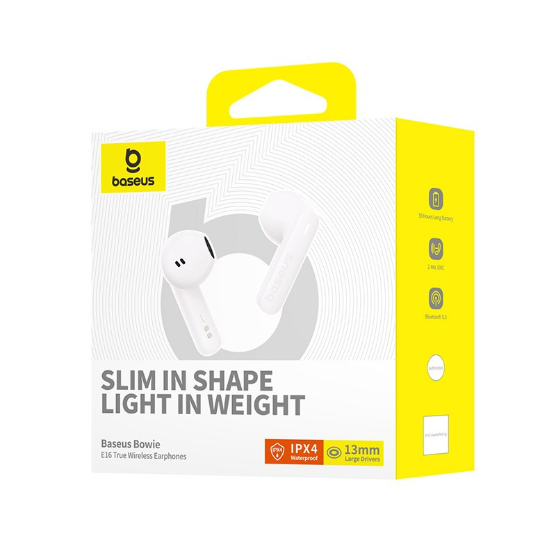 „Baseus Bowie E16“ ausinės „True“ belaidės ausinės, įdedamos į ausis skambučiai / muzika USB tipo C „Bluetooth“ balta