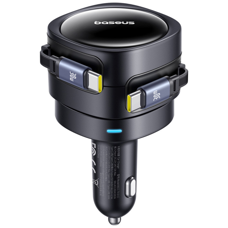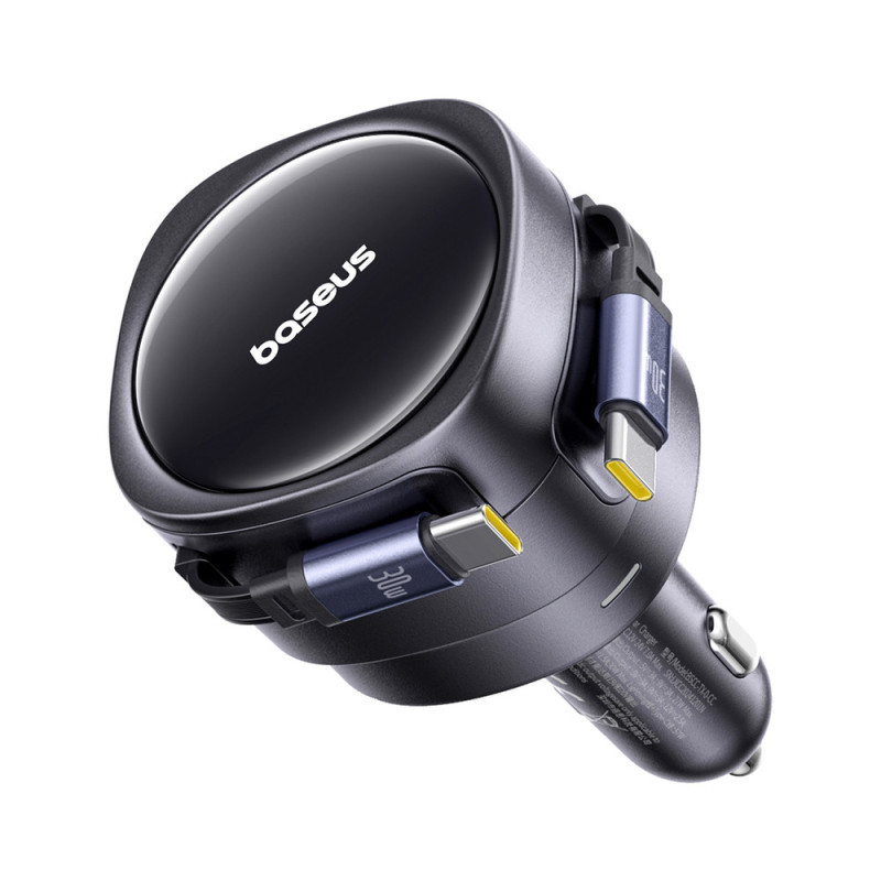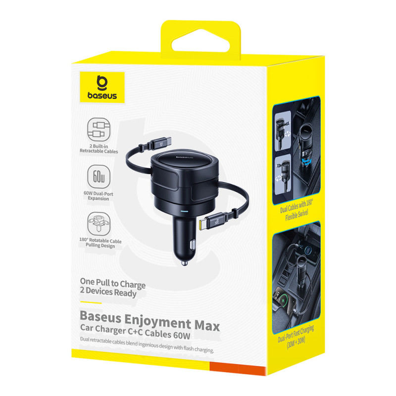 Baseus Enjoyment Max 60W Car Charger with Two Retractable USB-C Cables - Black