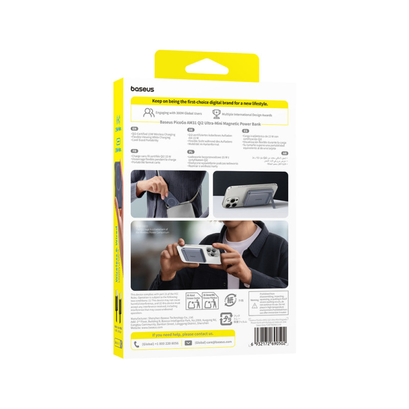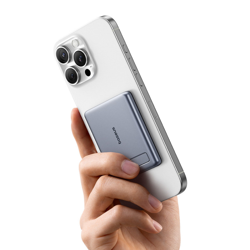 The ultra-slim Baseus PicoGo AM31 Qi2 power bank is the perfect combination of mobility, modern design, and incredibly convenient magnetic charging. Support for the Qi2 standard ensures a stable fit for your iPhone and faster, more efficient wireless charging up to 15W. The built-in stand allows for convenient use of your phone, while 20W wired charging shortens charging times. Crafted from aluminum and silicone, the device impresses with its durability and elegant, compact formâideal for everyday use and travel.