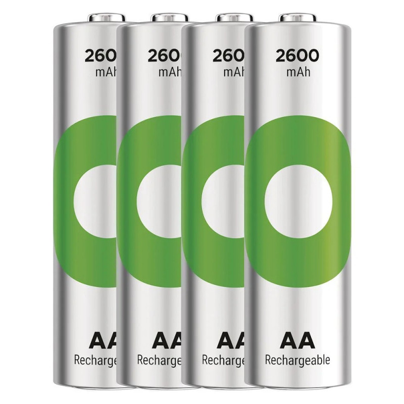 GP ReCyko batteries are rechargeable AA-size NiMH batteries with a capacity of 2600mAh and a voltage of 1.2V. They are suitable for everyday devices such as digital cameras, flashlights and toys.