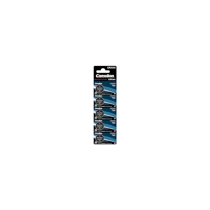 Camelion CR2025 5BL ličio baterijos suteikia 3V energiją ir tinka tokiems prietaisams kaip skaičiuotuvai, fotoaparatai ir širdies monitoriai. Kiekvienos baterijos matmenys yra 20 mm x 20 mm, o svoris - 2.5g.