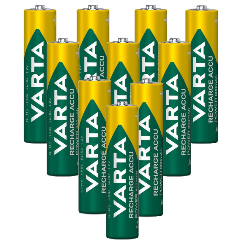 VARTA Recharge Accu Power AAA baterijos turi 800mAh talpą ir 1.2V įtampą. Jos tinka kasdieniams prietaisams, tokiems kaip skaitmeniniai fotoaparatai, žibintuvėliai ir žaislai.